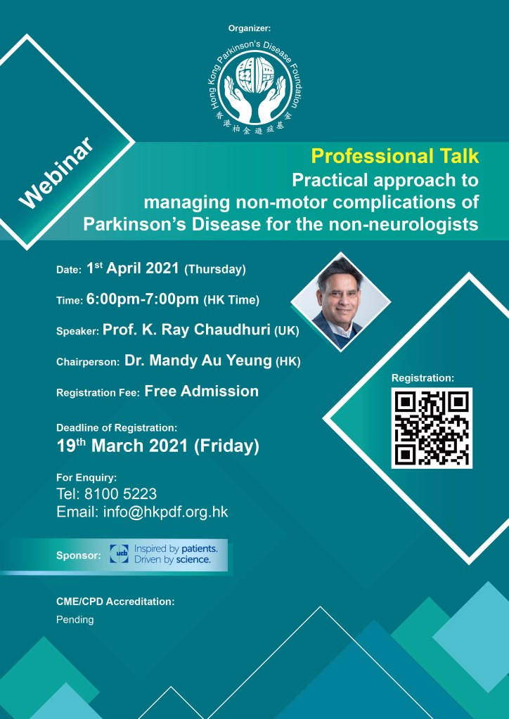 | Event | HKPDF Professional Talk: Practical approach to managing non-motor complications of Parkinson’s Disease for the non-neurologists |