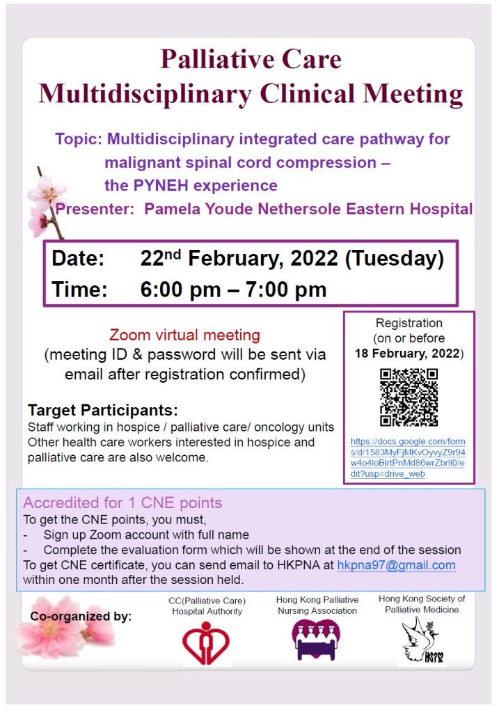 | Topics | Multidisciplinary integrated care pathway for malignant spinal cord compression –the PYNEH experience |