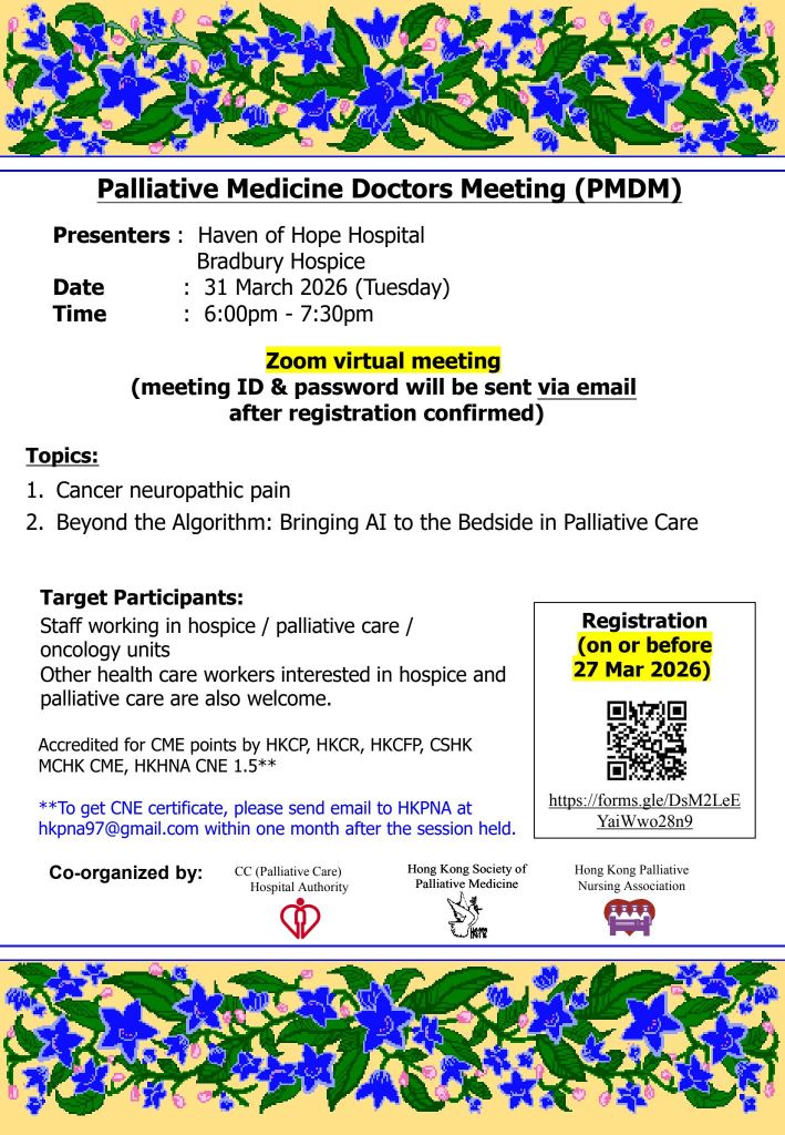 | Topics | 1. Cancer neuropathic pain 2. Beyond the Algorithm: Bringing AI to the Bedside in Palliative Care |
