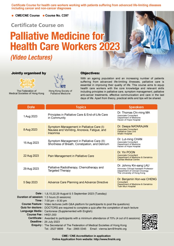 Our society has collaborated with HK Geriatrics Society in holding a session on “Legislation for advance medical directive in Hong Kong: how should clinicians be prepared?”